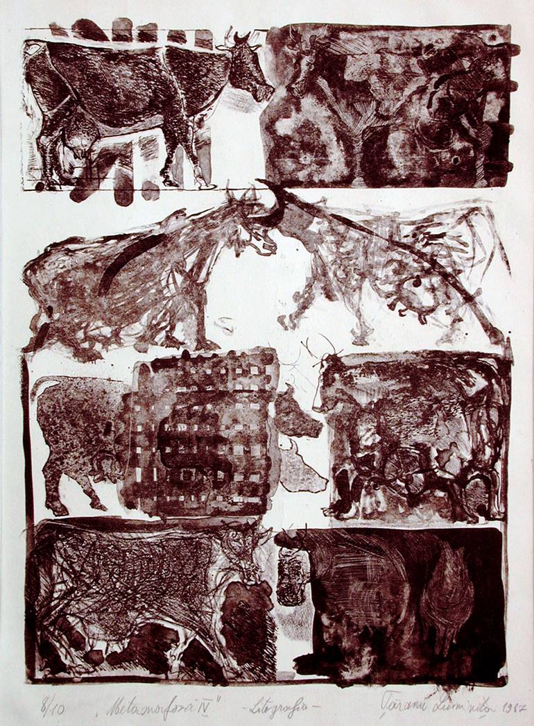 Lithography limited edition /10 This “metamorphosis” is part of my artistic production "Anatomic Tables", so named by the historian and critic of modern and contemporary art Giorgio Di Genova. Domestic and sacred icon, the cow is an animal that has accompanied man for thousands of years, both in l...