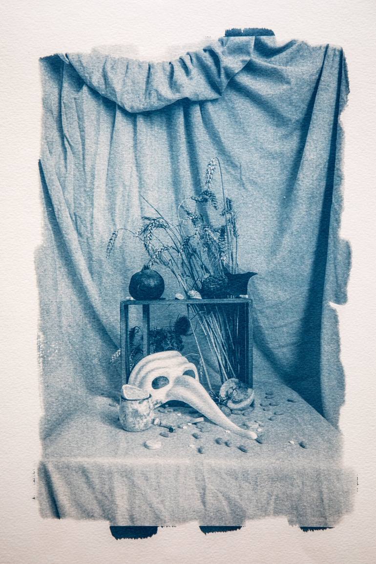 A cyanotype with a still life assemblation. An hommage to the pandemic time