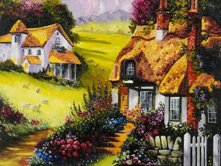 A picture of a mountain landscape in a room with a fireplace. Painting in a provincial interior. A picture with rural views in a summer house. 100% SATISFACTION! Your satisfaction is very important to Marina and she works with great attention, energy and positivity. You have the opportunity to g...