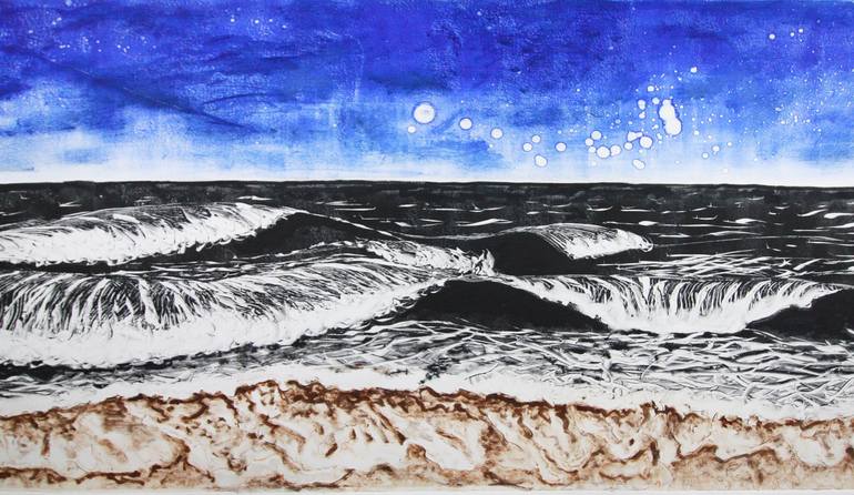 Abstracted natural elements. Sand, sea, surf and sky, reminiscent of an uncrowded beachfront. Oil monotype on Hahnemühle Copperplate paper from plexiglass. 47.5” x 28.5” - 2020
