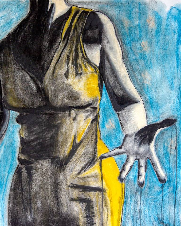 Title: Self-Portrait (1999) This limited edition fine art print is a self-portrait I created in 1999 using charcoal and pastel. The figure is cropped mid-frame—intentionally—centering power in gesture rather than gaze. The outstretched hand, emerging from shadows and yellow light, suggests both inv...