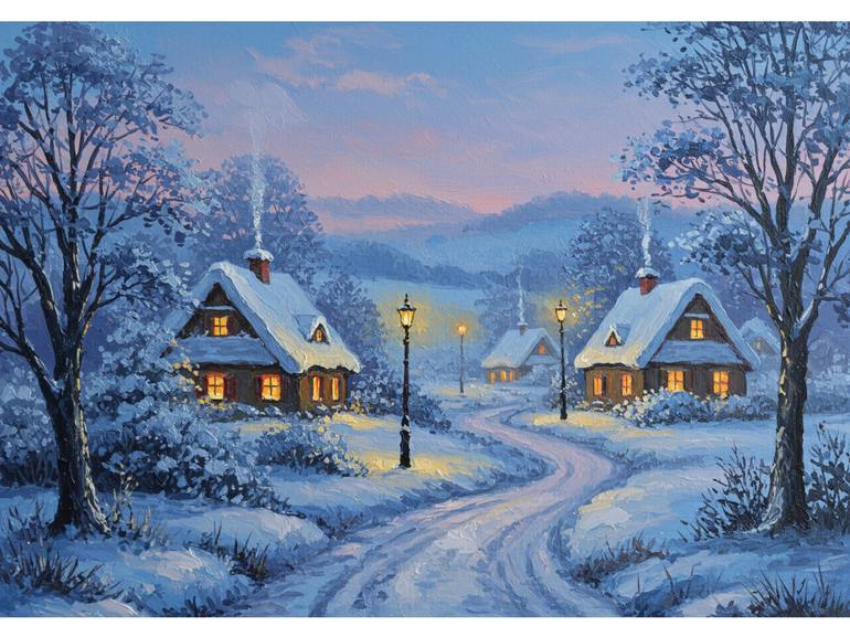 Snow-Covered Village" – A Serene Winter Wonderland Concept & Inspiration Inspired by the tranquil beauty of snow-covered European villages, this artwork captures the magic of winter’s crisp air, delicate blue and lavender shadows, and soft, glistening snow. The scene evokes nostalgia, warmth, a...