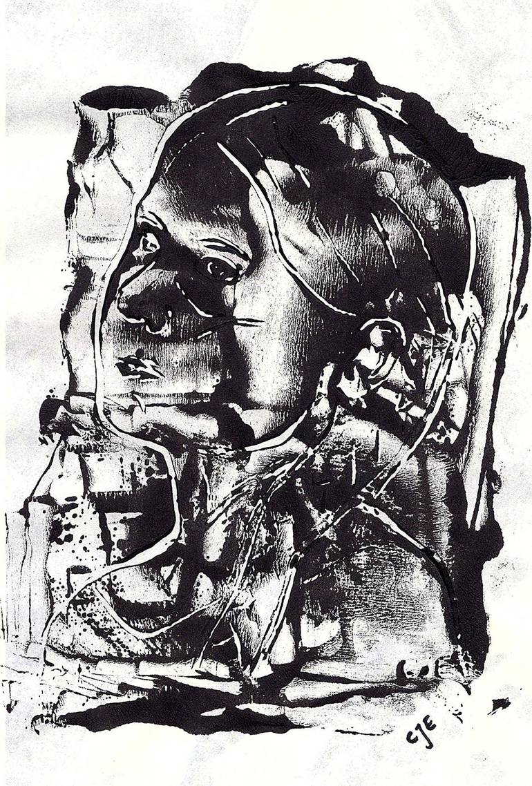 Linocut print in lots of black. Roughly half A4 paper but will be mounted on a backing.