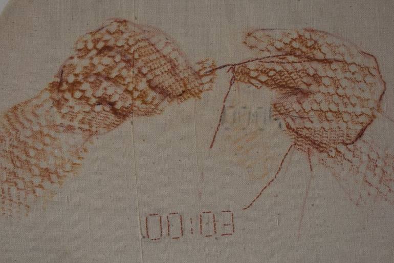 Title: ' The Needleworker' Dim: 30cm, 2011 Technique: silk-screen printing The main element of the work composition are hands, hands that move continuously, knitting the model, which seems to flow from the depths of the subject and entirely cover them. Printed on circular canvas, it makes a parall...
