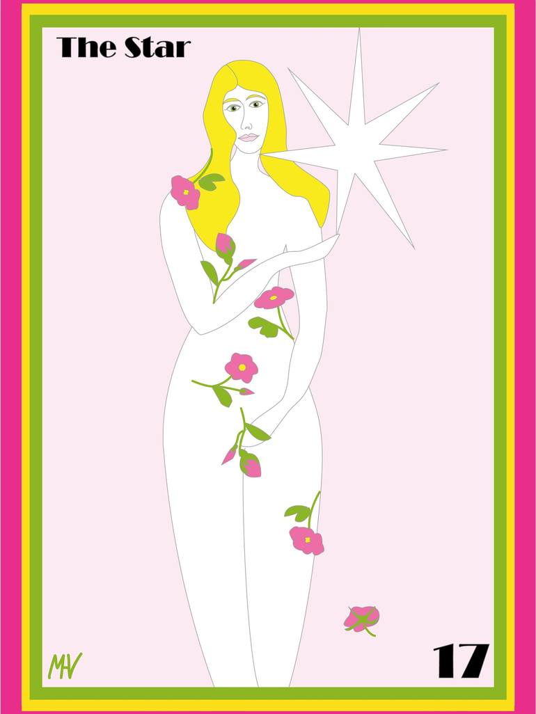 You drew the Star. It’s a beautiful card. It evokes the beginning of the night, beauty, poetry, femininity and believing in one's fate. I found my inspiration to draw this card in the Visconti tarot card. The star in this card is Venus. So I mixed the Visconti card with the most iconic Venus, the...