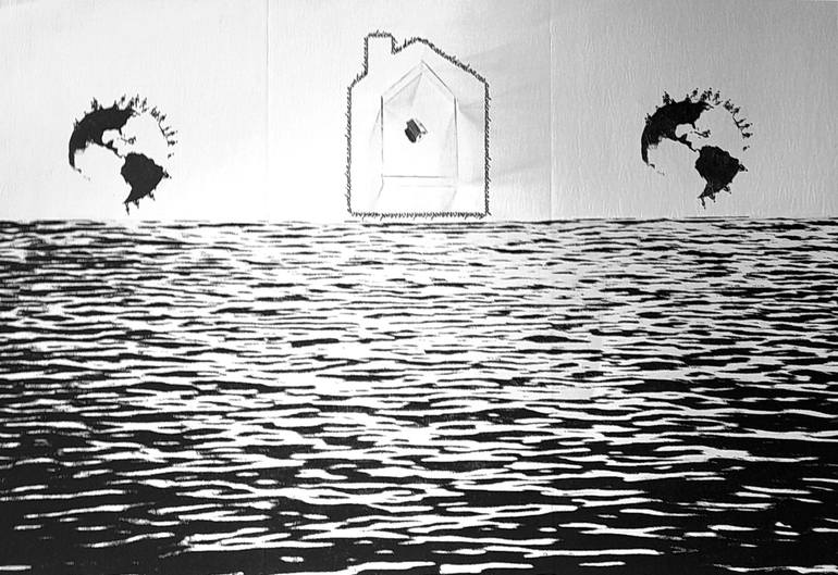 From the series "Returning home",this work is a lithograph inspired by the globalized world, inmigration, physical and cultural distances