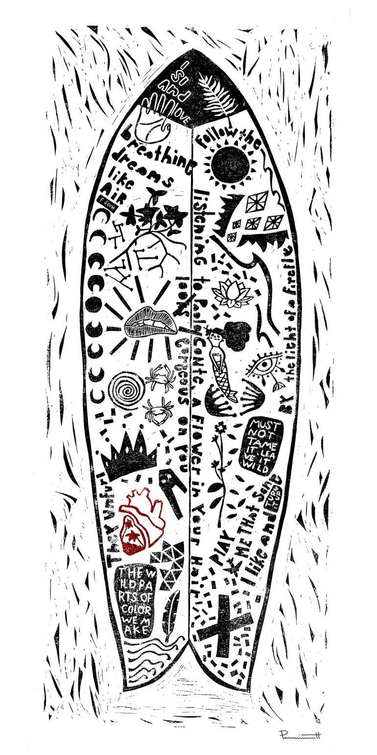 This is a hand-inked, hand-carved, and hand-pressed linocut art print. This collection was made in studio during my residency at MWACD in the FL Keys, and was shown at my show titled, "Island Love." These linocut's are a love letter to sandy hair and flip flops. Piña colada optional. **These are or...