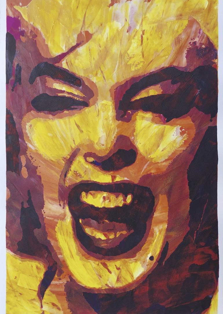 Tribute to the American actress, a beauty icon and a timeless myth. Marilyn Monroe in the movie "Some Like It Hot" (beach scene, Sugar Meets the Millionair). The cinematic work, scripted and produced by Billy Wilder, is undoubtedly one of the funniest comedies of all time. Screen printing. Monoprint...