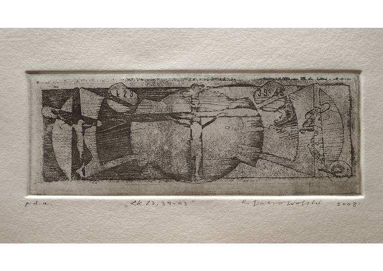 born in of the year 1965 in Poznań, Poland text fragment:art historian: Łucja Seredyszyn – Wojtasik (personal exhibition at the Copper Museum in Legnica) "ELECTROTINTS BY REMIGIUSZ DOBROWOLSKI November 2018 - March 2019 A copper plate can be a matrix for many graphic techniques: copperplate engraving, etching, aquatint. In the mid-20th century, another technique of creating graphics from a copper matrix was created, on which the "drawing" is created thanks to electrolytic etching of the plate. It was called electrotint by its creator Stanisław Rzepa and can be considered a variety of aquatint. The exhibition of Electrotints by Remigiusz Dobrowolski presents the works of an artist from Poznań, where he graduated from the State High School of Fine Arts. In the years 1989-1993 he studied at the Academy of Fine Arts in Urbino in Italy. He is an exhibition specialist by education, a certified painter by education, and above all a restless spirit searching for his own means of expression for the artistic problems that trouble him. The hero of our exhibition, Mr. Remigiusz Dobrowolski, learned the electrotint technique from Roman Artymowski's Manual of Artistic Graphics Methods, published in 1975. He improved it and simplified it a bit. The plates are not hung in a tray. One lies on the bottom, and the other parallel above it, supported on ceramic, glass or plastic supports and immersed only with the face in the electrolyte. He called it horizontal electrotint. The exhibition will also feature the artist's paintings, made using unconventional techniques."
