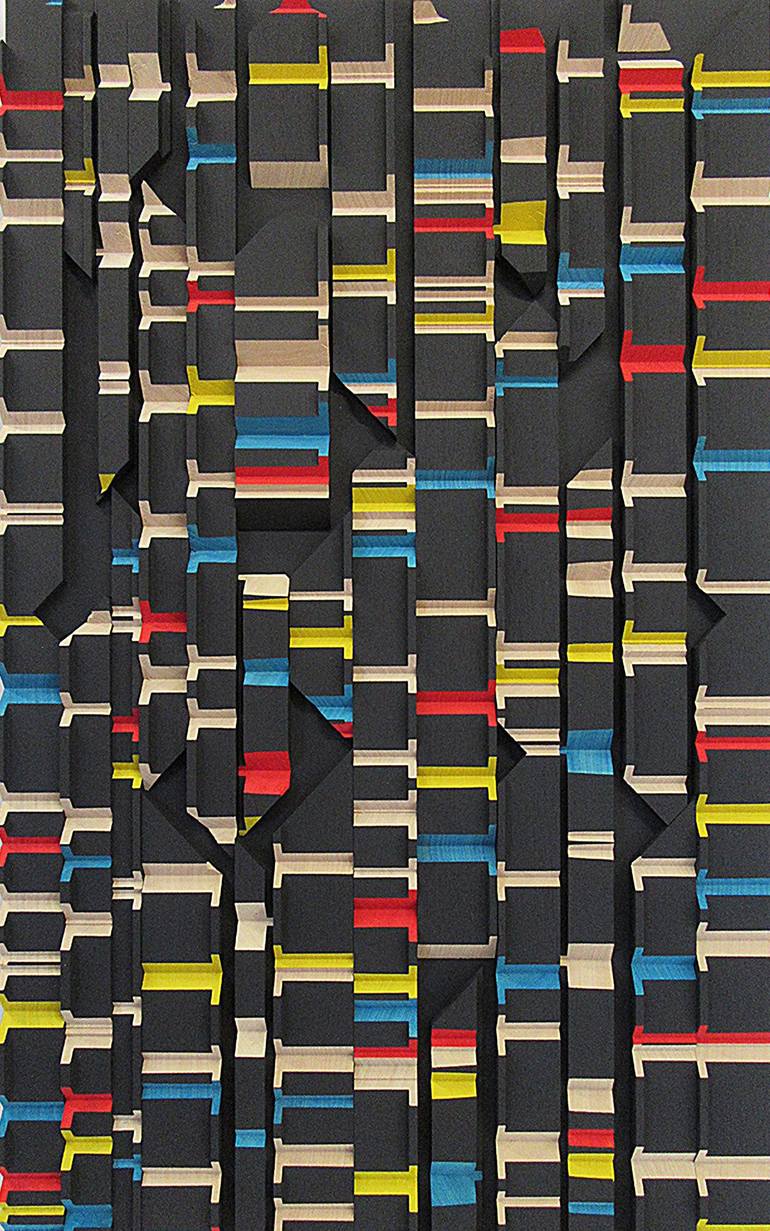 Frank Murri (Australia) The nature of my art practice consists of wall-hung, abstract timber relief sculptural works. These pieces are formed by incorporating Mathematical formulas, theorems & sequences; Musical scores & Literary extracts. It is an art form which I have developed, and which I hope one sees as a unique creation. All of my works advocate pure abstraction in an attempt to synthesize a design aesthetic. By looking into the realm of pure mathematics, there lies within a beauty which transcends its usual form. As Bertrand Russell stated, “Mathematics, rightly viewed, possesses not only truth, but supreme beauty — a beauty cold and austere, like that of sculpture.” The Mathematical pieces I create are formulated to capture this beauty. ~*~ In addition to my Mathematical art pieces, I have also created abstract representations of Musical scores as wall-hung timber relief sculptural pieces. They represent the first page of sheet music of particular classical works, in particular: Puccini's 'Vissi dárte' (I lived for art) from Tosca; Verdi's 'Grand March from Aida'; Schubert's 'Ave Maria, Op.52, No. 6'; Korsakov's 'The Flight of the Bumble-Bee' and Albinoni's 'Adagio'. Each sculptural piece has the notation of sheet music represented through carvings into the timber staves (also known as staffs), or notes on outer ledger lines. Please note that my pieces are pure abstractions of musical scores, as I have not used the usual and specific music symbols and elements. They have not been created as direct representations to be performed. I have created these sculptural pieces as an artistic expression of the beauty I see held in the musical score (itself a wonderful abstraction and code of notes and symbols) which represent such beautiful pieces of music. ~*~ In addition to the Mathematical & Musical art pieces, I have also created abstract representations of Literary extracts as wall-hung timber relief sculptural pieces. Each segment is carved in a particular sequence representing a specific literary work. The spacing between each carving represents a letter of those words in the piece. ie, the letter “A” = 1mm, whilst “Z” = 26mm spacing.