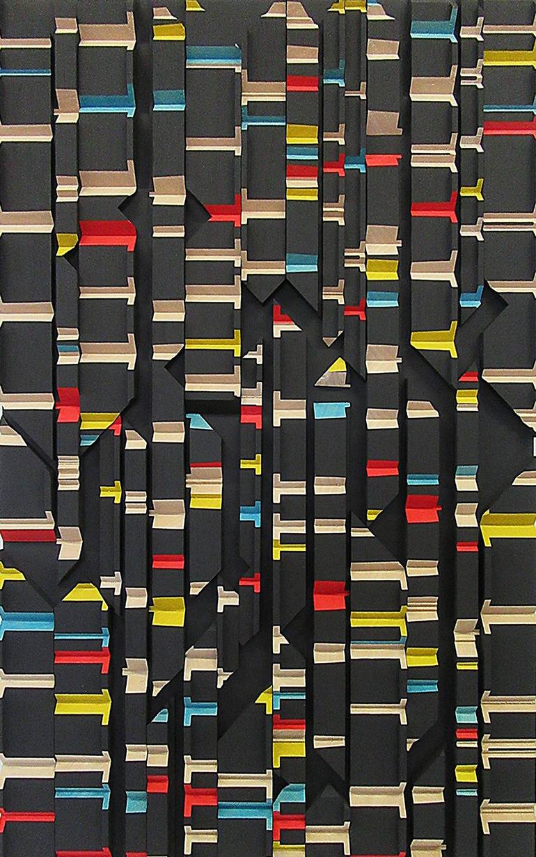 Frank Murri (Australia) The nature of my art practice consists of wall-hung, abstract timber relief sculptural works. These pieces are formed by incorporating Mathematical formulas, theorems & sequences; Musical scores & Literary extracts. It is an art form which I have developed, and which I hope one sees as a unique creation. All of my works advocate pure abstraction in an attempt to synthesize a design aesthetic. By looking into the realm of pure mathematics, there lies within a beauty which transcends its usual form. As Bertrand Russell stated, “Mathematics, rightly viewed, possesses not only truth, but supreme beauty — a beauty cold and austere, like that of sculpture.” The Mathematical pieces I create are formulated to capture this beauty. ~*~ In addition to my Mathematical art pieces, I have also created abstract representations of Musical scores as wall-hung timber relief sculptural pieces. They represent the first page of sheet music of particular classical works, in particular: Puccini's 'Vissi dárte' (I lived for art) from Tosca; Verdi's 'Grand March from Aida'; Schubert's 'Ave Maria, Op.52, No. 6'; Korsakov's 'The Flight of the Bumble-Bee' and Albinoni's 'Adagio'. Each sculptural piece has the notation of sheet music represented through carvings into the timber staves (also known as staffs), or notes on outer ledger lines. Please note that my pieces are pure abstractions of musical scores, as I have not used the usual and specific music symbols and elements. They have not been created as direct representations to be performed. I have created these sculptural pieces as an artistic expression of the beauty I see held in the musical score (itself a wonderful abstraction and code of notes and symbols) which represent such beautiful pieces of music. ~*~ In addition to the Mathematical & Musical art pieces, I have also created abstract representations of Literary extracts as wall-hung timber relief sculptural pieces. Each segment is carved in a particular sequence representing a specific literary work. The spacing between each carving represents a letter of those words in the piece. ie, the letter “A” = 1mm, whilst “Z” = 26mm spacing.