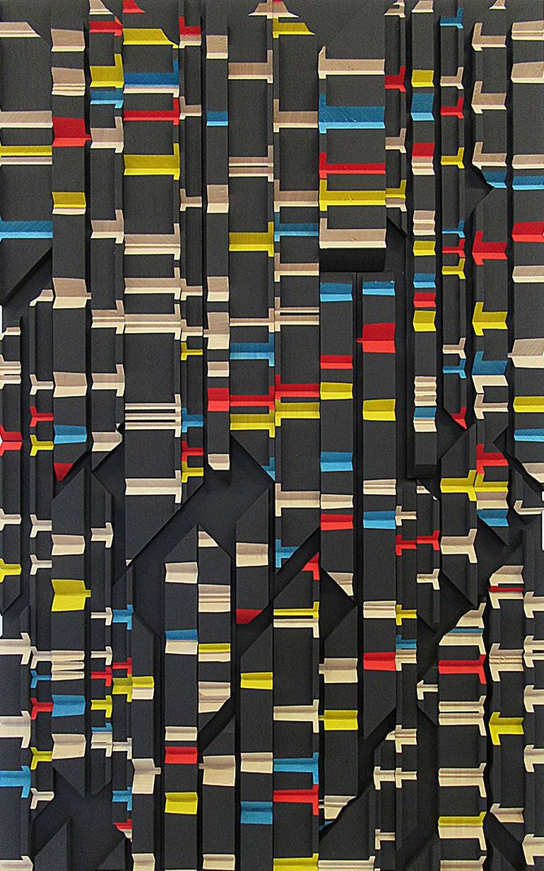 Frank Murri (Australia) The nature of my art practice consists of wall-hung, abstract timber relief sculptural works. These pieces are formed by incorporating Mathematical formulas, theorems & sequences; Musical scores & Literary extracts. It is an art form which I have developed, and which I hope one sees as a unique creation. All of my works advocate pure abstraction in an attempt to synthesize a design aesthetic. By looking into the realm of pure mathematics, there lies within a beauty which transcends its usual form. As Bertrand Russell stated, “Mathematics, rightly viewed, possesses not only truth, but supreme beauty — a beauty cold and austere, like that of sculpture.” The Mathematical pieces I create are formulated to capture this beauty. ~*~ In addition to my Mathematical art pieces, I have also created abstract representations of Musical scores as wall-hung timber relief sculptural pieces. They represent the first page of sheet music of particular classical works, in particular: Puccini's 'Vissi dárte' (I lived for art) from Tosca; Verdi's 'Grand March from Aida'; Schubert's 'Ave Maria, Op.52, No. 6'; Korsakov's 'The Flight of the Bumble-Bee' and Albinoni's 'Adagio'. Each sculptural piece has the notation of sheet music represented through carvings into the timber staves (also known as staffs), or notes on outer ledger lines. Please note that my pieces are pure abstractions of musical scores, as I have not used the usual and specific music symbols and elements. They have not been created as direct representations to be performed. I have created these sculptural pieces as an artistic expression of the beauty I see held in the musical score (itself a wonderful abstraction and code of notes and symbols) which represent such beautiful pieces of music. ~*~ In addition to the Mathematical & Musical art pieces, I have also created abstract representations of Literary extracts as wall-hung timber relief sculptural pieces. Each segment is carved in a particular sequence representing a specific literary work. The spacing between each carving represents a letter of those words in the piece. ie, the letter “A” = 1mm, whilst “Z” = 26mm spacing.