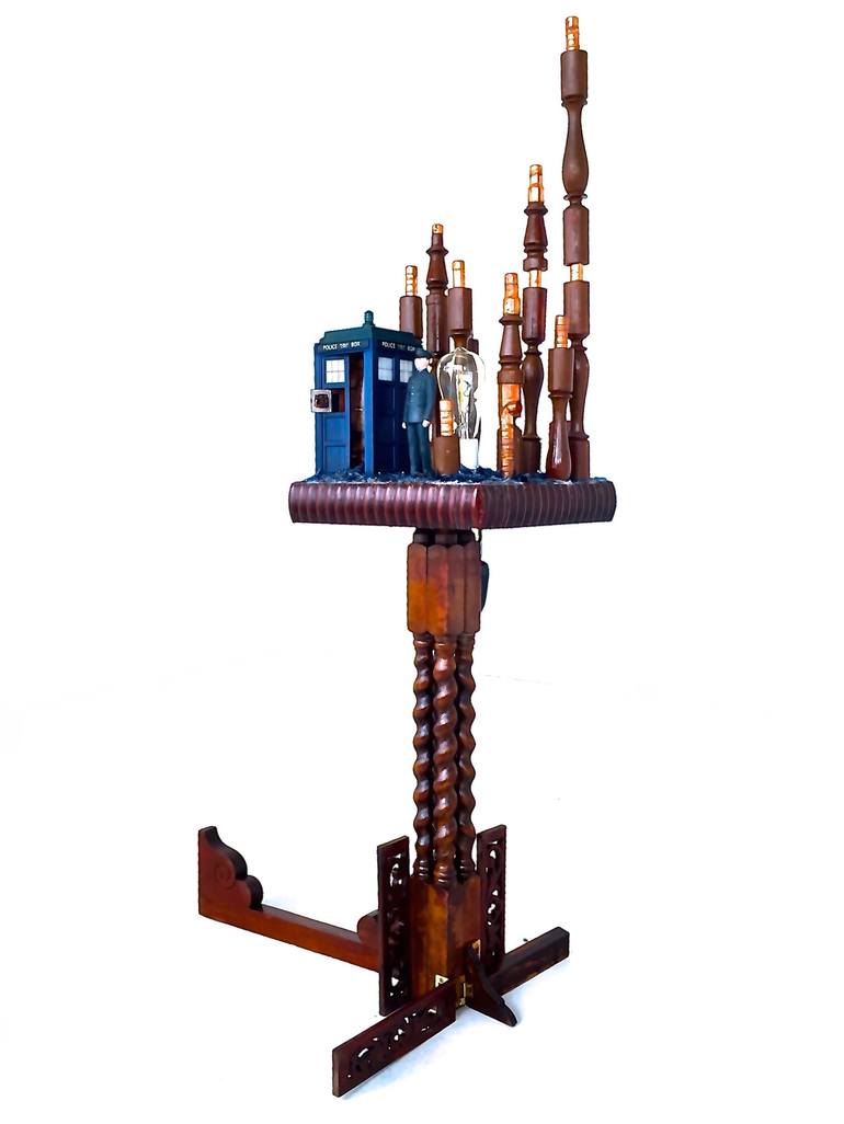 This piece of light art is part of an Installation & Performance named FIVE YEARS presented at the Zer0 Open Studio in London. The work was inspired by the song Five Years by David Bowie. It shows a collapsing and disruptive world. It is made of antique pieces of wood, plastic and glass found on the...
