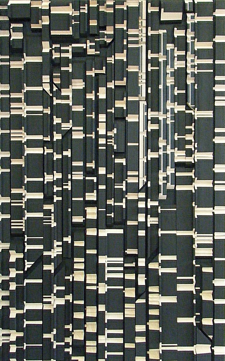Frank Murri (Australia) The nature of my art practice consists of wall-hung, abstract timber relief sculptural works. These pieces are formed by incorporating Mathematical formulas, theorems & sequences; Musical scores & Literary extracts. It is an art form which I have developed, and which I hope one sees as a unique creation. All of my works advocate pure abstraction in an attempt to synthesize a design aesthetic. By looking into the realm of pure mathematics, there lies within a beauty which transcends its usual form. As Bertrand Russell stated, “Mathematics, rightly viewed, possesses not only truth, but supreme beauty — a beauty cold and austere, like that of sculpture.” The Mathematical pieces I create are formulated to capture this beauty. ~*~ In addition to my Mathematical art pieces, I have also created abstract representations of Musical scores as wall-hung timber relief sculptural pieces. They represent the first page of sheet music of particular classical works, in particular: Puccini's 'Vissi dárte' (I lived for art) from Tosca; Verdi's 'Grand March from Aida'; Schubert's 'Ave Maria, Op.52, No. 6'; Korsakov's 'The Flight of the Bumble-Bee' and Albinoni's 'Adagio'. Each sculptural piece has the notation of sheet music represented through carvings into the timber staves (also known as staffs), or notes on outer ledger lines. Please note that my pieces are pure abstractions of musical scores, as I have not used the usual and specific music symbols and elements. They have not been created as direct representations to be performed. I have created these sculptural pieces as an artistic expression of the beauty I see held in the musical score (itself a wonderful abstraction and code of notes and symbols) which represent such beautiful pieces of music. ~*~ In addition to the Mathematical & Musical art pieces, I have also created abstract representations of Literary extracts as wall-hung timber relief sculptural pieces. Each segment is carved in a particular sequence representing a specific literary work. The spacing between each carving represents a letter of those words in the piece. ie, the letter “A” = 1mm, whilst “Z” = 26mm spacing.