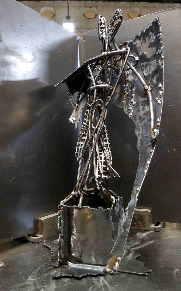Angel with broken wing unique iron welding sculpture aprox . 20 x 50 x 15 cm signed December 2018 varnished with special protection to preserve all the welding effects and reflections will be sent with authenticity certificate