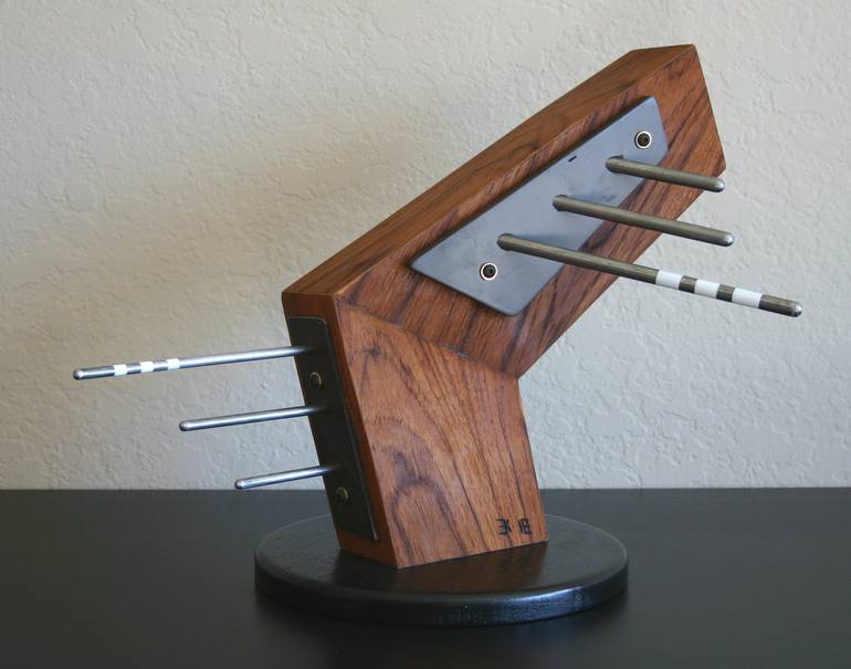 Aero did not even start out as a sculpture. I started experimenting with laminating plywood sheets. Then cutting at mitered angles. Once this all matched, I felt I had a sculptural body taking shape and I started adding more features as they came to mind. This piece is true experimentation with ...