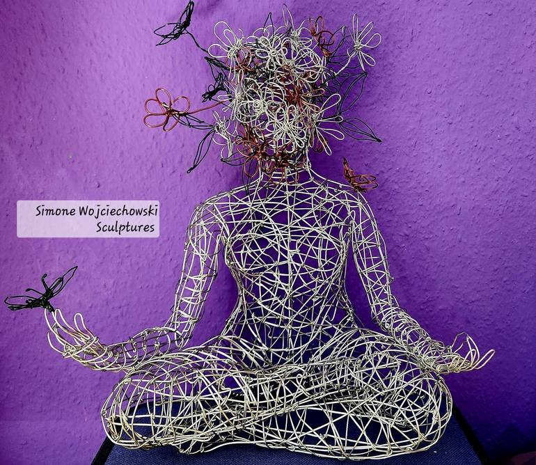 Simone Wojciechowski is a wire sculptor, working in galvanised steel, copper and brass wire. Simone, was born in Berlin/ Germany, she moved to South Africa, Cape Town in 2005 where she lived and worked for 13 years. She discovered her gift and passion for sculpting with wire in early years in South Africa. As her confidents grew she found her own language and understanding of form. In 2014 her works attracted the attention at Artvark Gallery. Since her work started selling the consistent quality of her pieces has created a steady demand for her work. She choose the female form as well as animals to express movement, form and motive. She has an incredible ability to transform wire into 3 dimensionality. Her sculptures have an emotional quality that gives her wire figures life and energy. Her pieces, apart from their uniqueness, stand out on its own as a piece of contemporary art and that creates a space around them. The sculptor’s passion is reflected in her beautifully thought out sculptures. Her works are in private collections in the UK, US, Germany, Denmark and South Africa.