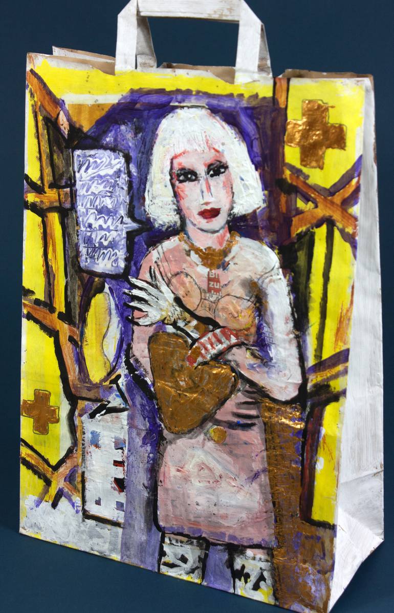 Beauty and the Beast - paper bag There are various possibilities to present the original sculpture in a space or at a wall. - flat folded as painting picture in a frame /choose the side you daily prefer - at the wall as an object /opened as bag-box or flat folded - multiple paper bags grouped in sp...
