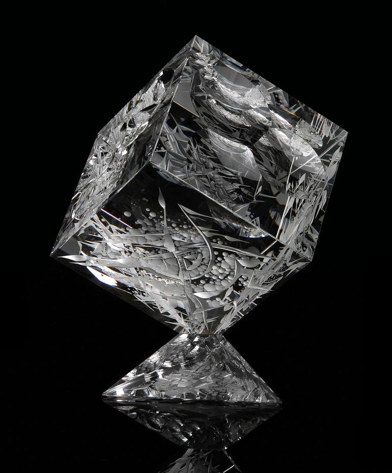 Abstract motifs originates in Mother Nature. The reality is then transferred in my mind into the final depiction. The cube has three different unique engravings on all bottom surfaces which are nicely divided with three lens on all top surfaces. This precious stone provided in superior quality bri...
