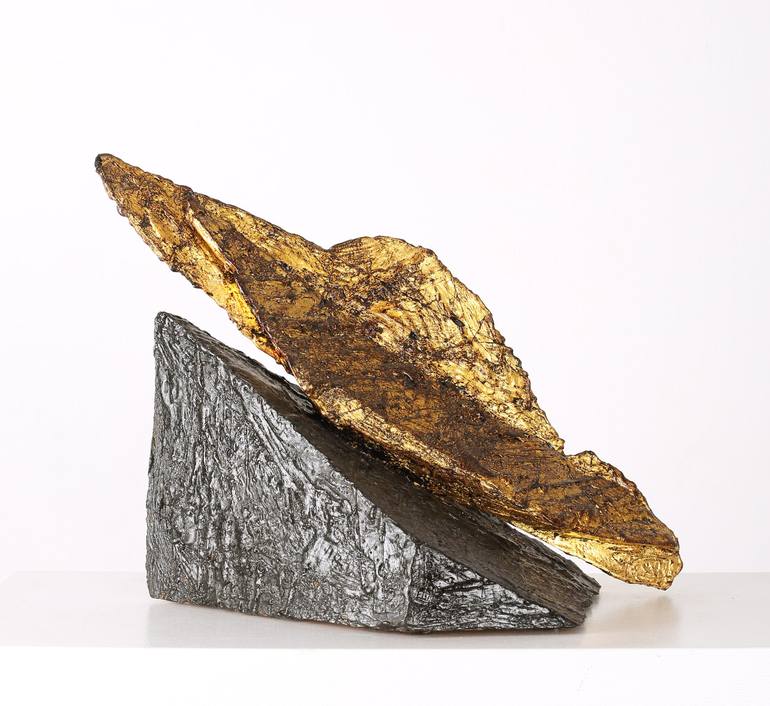 The sculpture Catier gold rush was created in the year 1992, one out of the series "Gold rush" made of solid wood, tarred and gilded with 22 carat gold leaf. The structure is raw and dark though the thick tar coating, the gilded surfaces have a golden glow that transmits a reflective lightness in t...