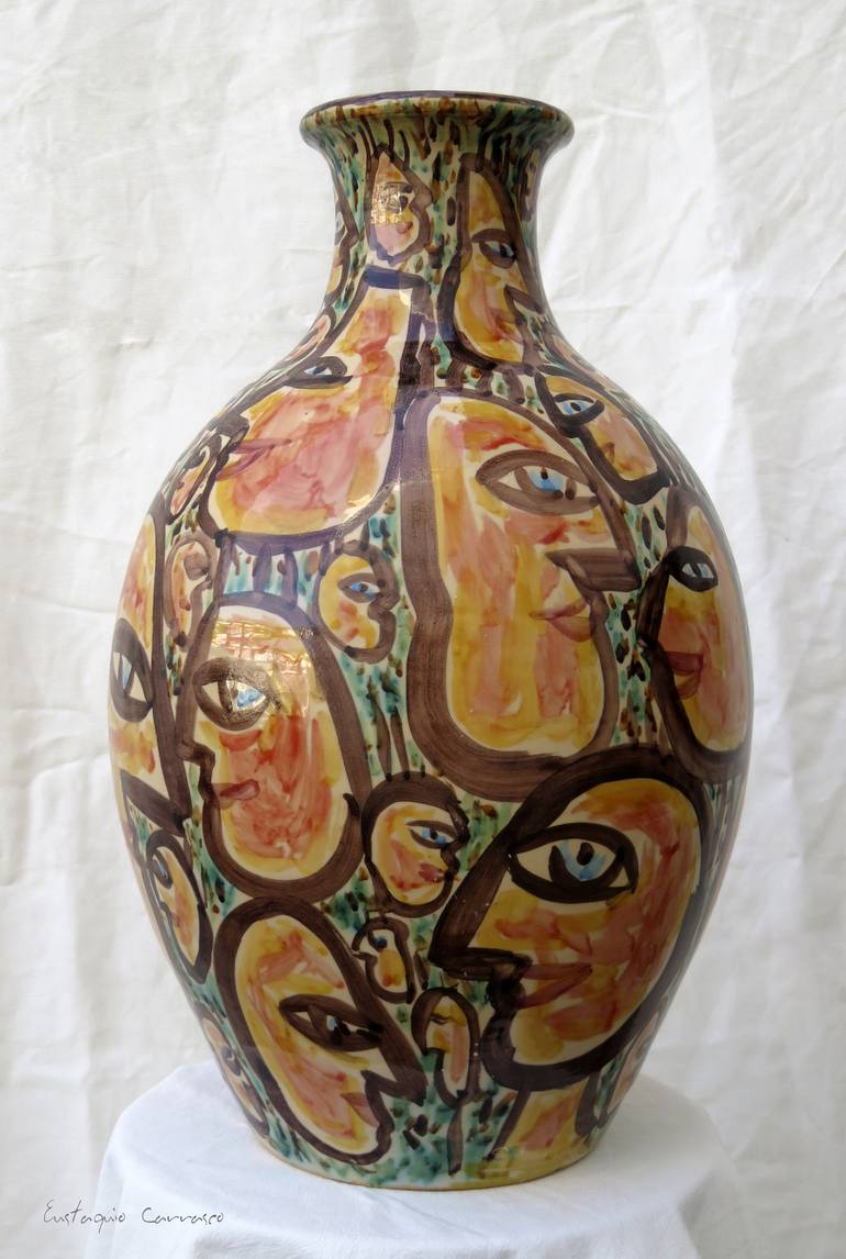 Ceramic piece made and painted by hand, glazed and fired in a special ceramic kiln at temperatures of 1060 degrees Celsius (1940 degrees Fahrenheit), applying colors and enamels previously baked at very high temperatures. This is an excellent piece or sculpture of artistic ceramic that is characteri...
