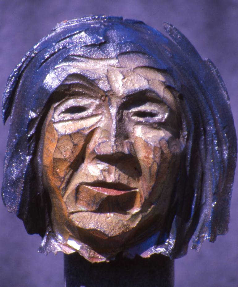 I have an ambitious approach to life ... and to art ... make something happen every day ... but most of all have fun doing it! A sculptor first, and now working in 2D, I do my best to do just that. Presented here are examples of some of my work. •• My sculpture runs the gamut from abstract, to figurative, to architectural. The materials and methods used are diverse ... from figures modeled in clay or wax, then cast in pewter or bronze ... to aluminum maquettes (produced by evaporative pattern casting) which serve as the 3D blueprints for the pieces that are enlarged and fabricated from sheet metal of all kinds. •• My 2D pieces range from abstract to figurative. You’ll find Originals done in oils or acrylic, one-of-a-kind monotypes, collages, mixed media paintings, and more ... I love working in all mediums. Some of my 2D work may be available as reproductions on this site. ••• MY FASCINATION WITH SCIENCE FICTION & MAKE BELIEVE - When I was in second grade, television was new and the hottest thing. The "Adventures of Flash Gordon" was my favorite program. There was only one kid in the neighborhood who had a TV. We, all the kids, gathered at his house for every episode. I was a huge fan of the characters. Flash was cool and my hero. Dale Arden was OK but Princess Aura was way cooler because she was naughty. Ming The Mercilous was very interesting. But Dr. Zarkov and his super duper telescope - that could see into time forwards and backwards, far and near - was the star of the show for me. The spaceship was really hoakey. You could see the wire that it was traveling on and the little puffs of smoke coming out of it were a joke, even for me. But the concept of the show was magical. Also at that time there were radio shows about space travel and aliens and monsters. I would listen to those shows with my grandfather as I sat on the floor next to the big wooden box radio so I could get the full impact of the sounds. •• These shows inspired me to draw spaceships, mostly "new and improved" versions of Flash's ship. I taped them all over my bedroom walls. At night I would travel with Flash. We would go to distant parts of the Universe and explore ancient ruins - like what I saw in National Geographic when I was not looking at the bare-breasted girls of exotic cultures. (I think artists and sculptors, are to a large part, voyeurs.) Those memories pop up in my art over and over. •• Faces also intrigue and inspire me.