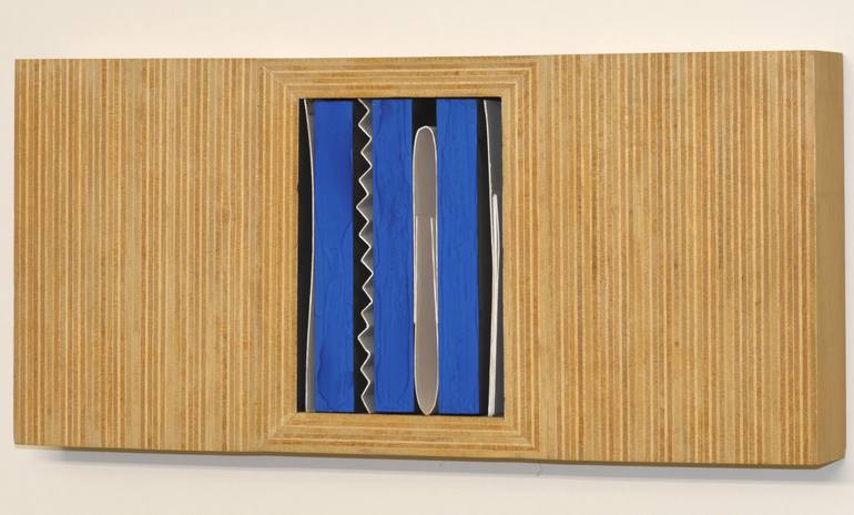 Materials: Acrylic, plywood, Magnet, galvanized iron, coated paper. Signed in the back. hanging hardware is included. This work is inspired by the lines that form the layers of the wooden plywood building one or two compact blocks. As part of these blocks I incorporate an empty square or rectangul...