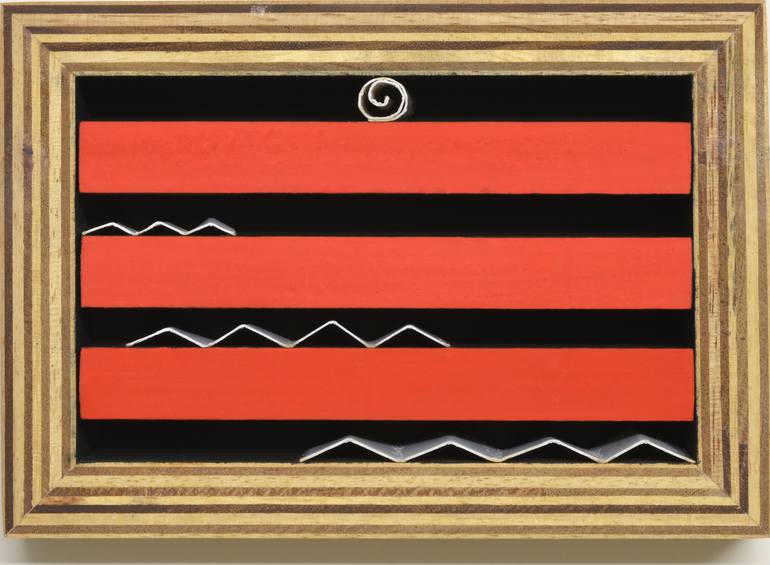 Materials: Acrylic, plywood, Magnet, galvanized iron, coated paper. Signed in the back. hanging hardware is included. This work is inspired by the lines that form the layers of the wooden plywood building one or two compact blocks. As part of these blocks I incorporate an empty square or rectangul...