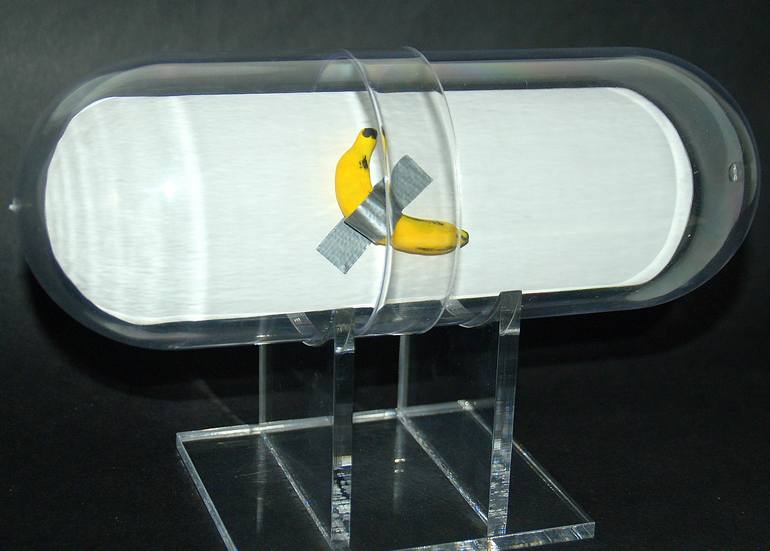 What if there were a pill, when taken, that would help artists to make conceptual art? At least, that’s what came to my mind when dreaming up this piece. A pill that helps you get into the swing of it. And thanks to Maurizio Cattelan! Wood, polymer clay, acrylic paint, acrylic, duct tape