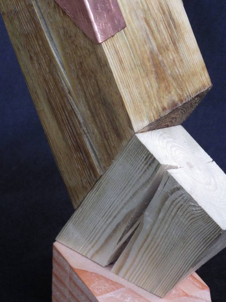 This freestanding sculpture has to be one of my favorite pieces, the different colours really highlight the reclaimed copper piece. The fold on the copper really accentuates the angles and lines on this sculpture followed by the natural splits in the wood gives the piece a softer side.