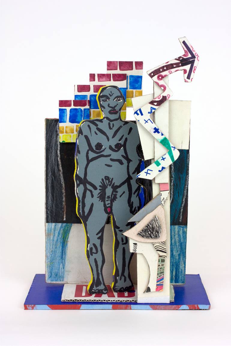 "DADA" narrative sculpture DADA & MOMA The cardboard surface consists of photo material, works from the project "artrecycle", acrylic paint and is protected by an acrylic varnish. The figurative or abstract forms and their surfaces result in different combinations of forms and different perspectives...