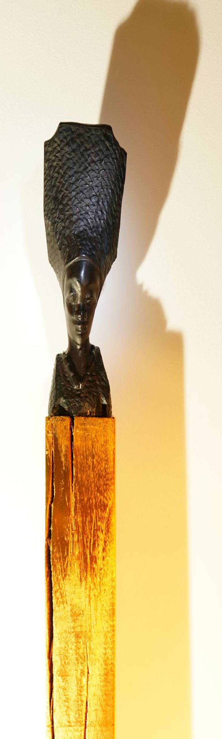 Egyptian art is mystical. The kings and queens are legendary and world famous. Their power and charisma is unique and unbroken. This work of art is unique and handmade, carved in ebony and worked on a gilded wooden base. Take this piece of this Egyptian culture into your home. You will be enthusiast...