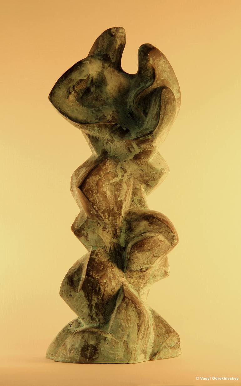 An abstract interpretation of embrace of two people. Looking from different points of view we can recognize some body silouettes. Another title of the work is "Hold Me Stronger Than Yesterday" - idea of sculpture and title were inspired by a famous musical hit. After wax conservation has a little bi...