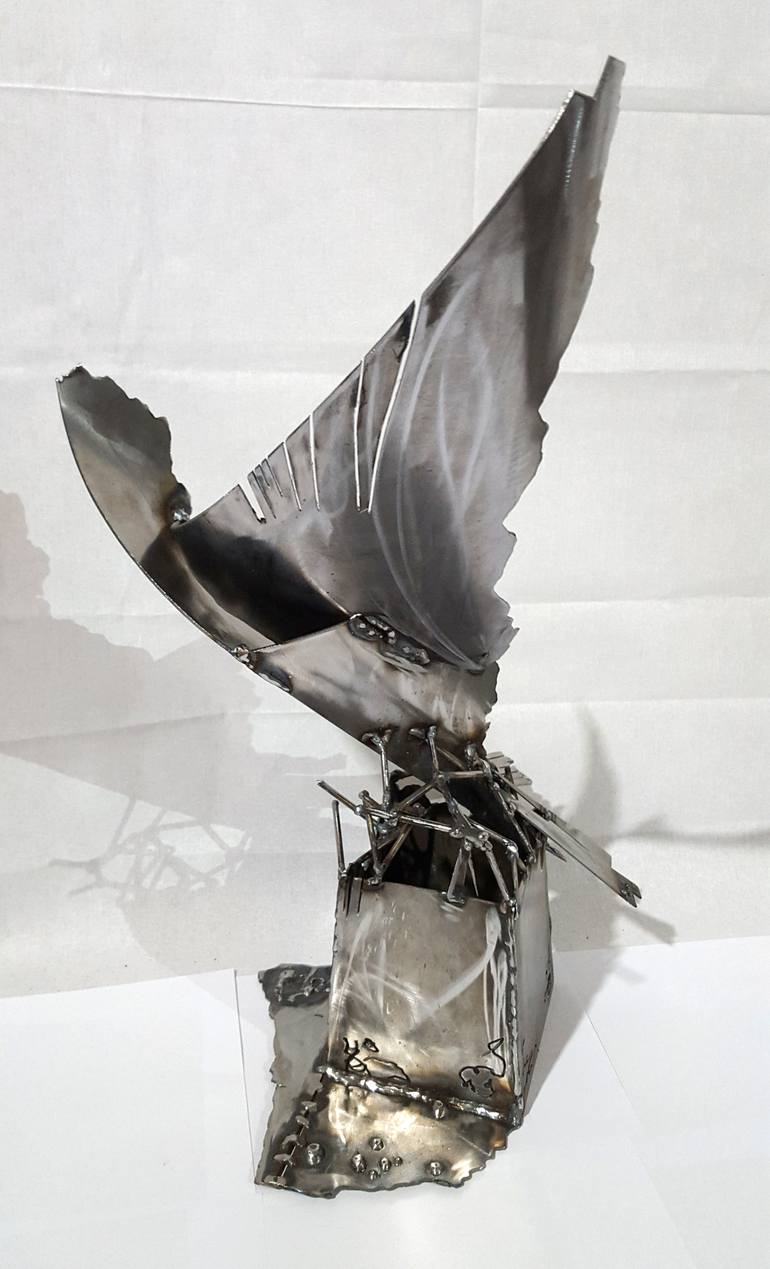 Frame from an ethernal flight 1 unique iron welding sculpture aprox . 40 x 40 x 50 cm signed December 2018 varnished with special protection to preserve all the welding effects and reflections will be sent with authenticity certificate