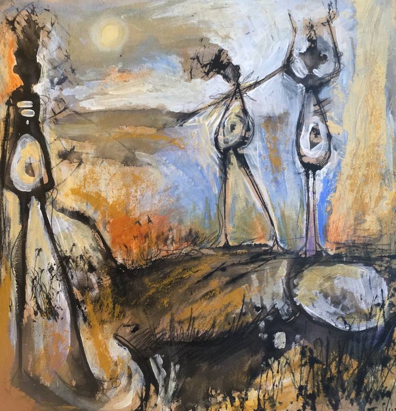 Firedance - By Cherianne Dawn B.A (Hons), MioEE "This piece is mixed media on wooden panel, and is a painting from the work I do from a purely intuitive level. I make the marks intuitively, creating the whole composition gradually, seeing what figures or environmental elements appear as I work. Thi...