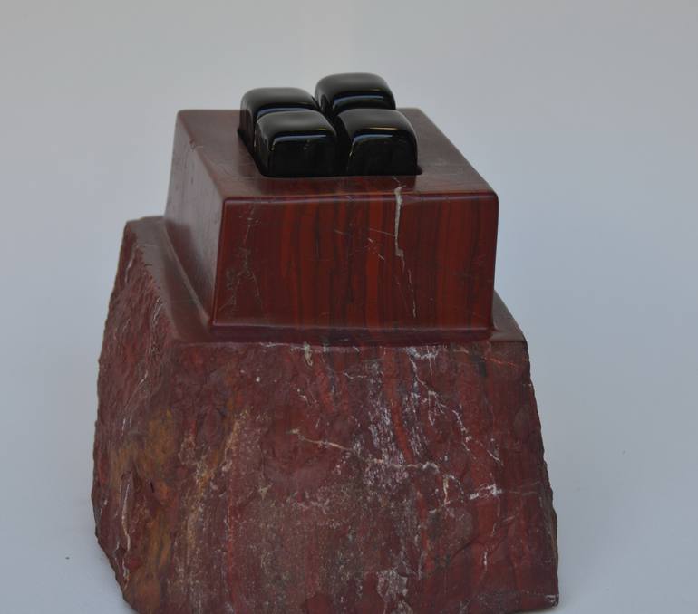 Simple form .Red very hard stone,glass.Meditative,exudes tranquility.