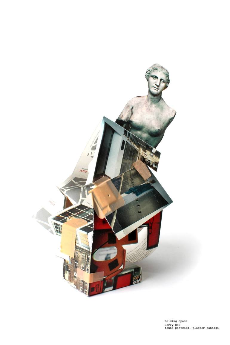 found poster card by folding, and medical plaster, acrylic box framed