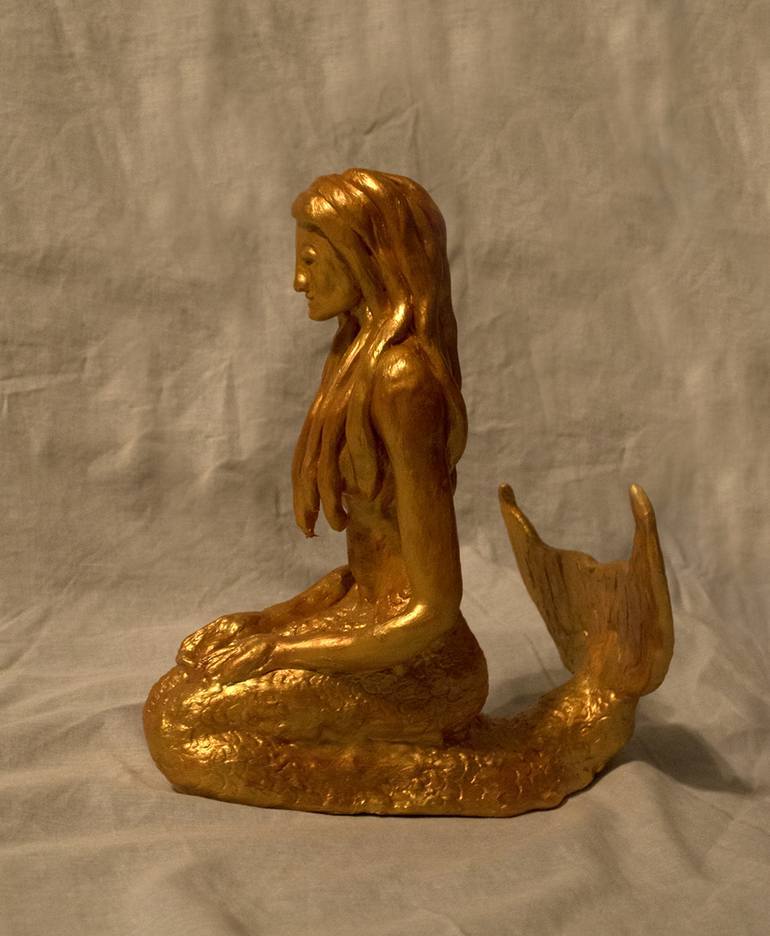 Gold Mermaid Ceramic Mermaid Sculpture Original Handmade Sculpture Earthenware , Acrylic paint Completely handmade one of a kind sculpture Approximately 9.5 inches tall x 8 inches long x 5.75 inches wide I've always loved images of mermaids. They are such a fantastic vision that has been aro...