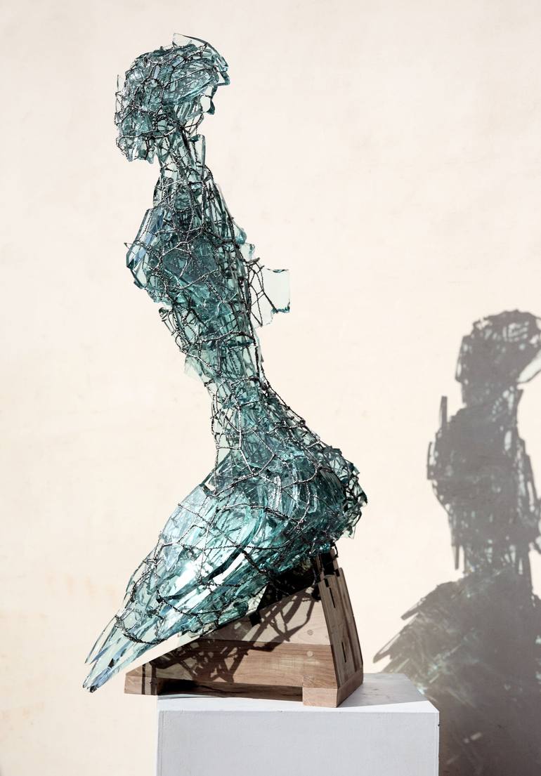 The Plate Glass and voids between the glass create changing shadows, fleeting expressions and glances within the Human form, with the permanence of stone but the plasticity of clay.