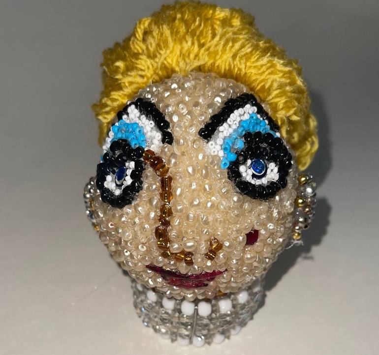 Hand beaded figurine meticulously hand embedded with vintage costume pearls and beads. One of a kind figurine of Divine has hundreds of repurposed pearls and beads. Measures 3 1/2" Diam, and 5"H (with base). Comes complete with vintage bracelet display base. Makes an incredible housewarming, or ...