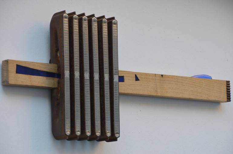 This object is a series of my metal-glass series. Combination of found metal and church colored glass.This ready to hang on the wall.