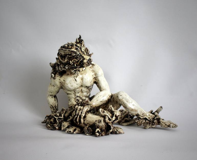 Сeramic sculpture, one kind, Tiger man Size: height 7, length 11, width 7 inches height 16, length 29, width 16 cm Sculpture technique using as raw material a malleable Earth which can have different color then cooked to increase its solidity. This is an original one of a kind sculpture Here you a...