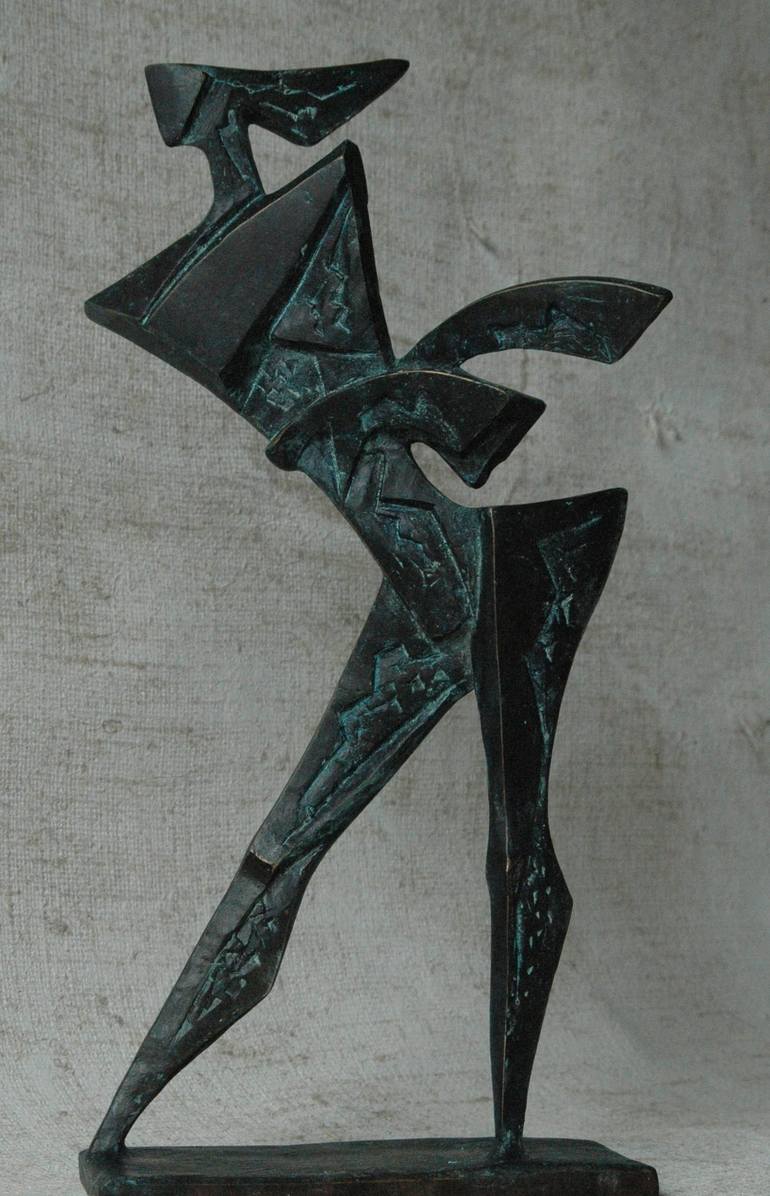PATCHED BRONZE SCULPTURE FIGURE ON THE WAY: the man who walks the path of his life following the path of his destiny with the ability to modify it through the choice that experiences have given him