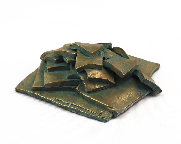 Série limitée de 1999. 3 formats de carrés en terre tannés en empilement rapide et instantané puis moulés dans l'instant . Est obtenue et reproduite ainsi la forme et la mémoire de l'instant et de l'instinct du geste ! Résine métal. l:12 x l:11 x ht:3 cm .
