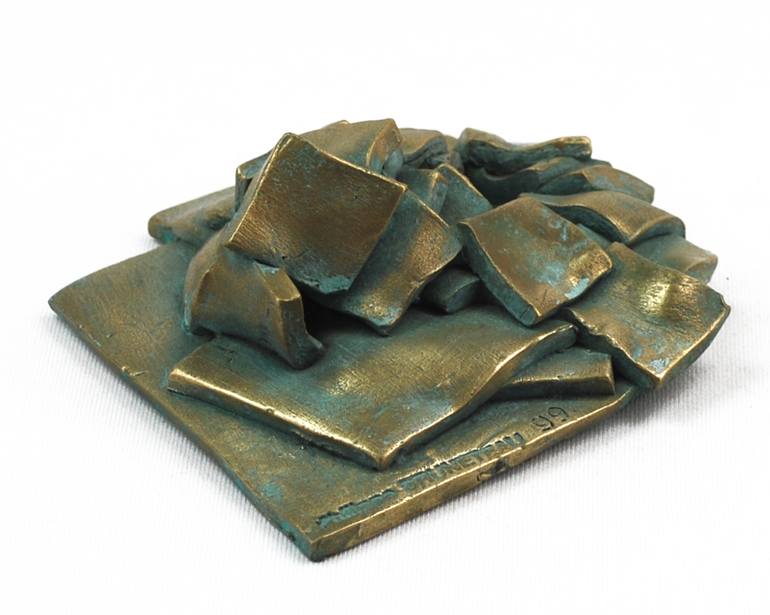 Série limitée de 1999. 3 formats de carrés en terre tannés en empilement rapide et instantané puis moulés dans l'instant . Est obtenue et reproduite ainsi la forme et la mémoire de l'instant et de l'instinct du geste ! Résine métal. l:14 x l:11 x ht:3,5 cm .