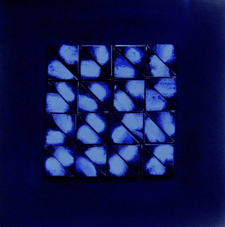 This wall based construction is part of a series where I was exploring structure and simple geometry. After a visit to India I started to use triangles , in this piece they are stacked on top of each other giving depth as well as surface pattern. I applied raw pigments with my finger tips and the ro...