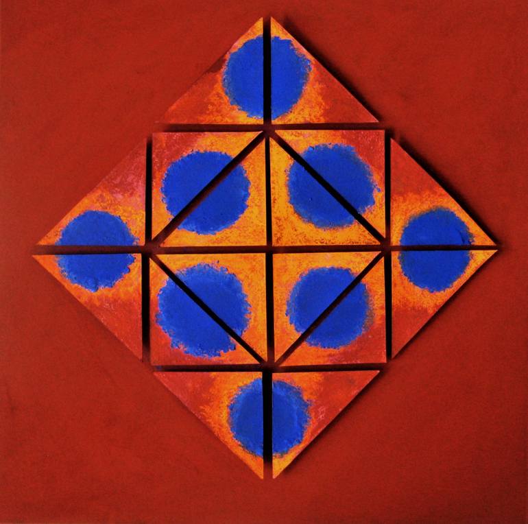 I've always been drawn to symmetry and pattern and first started to explore the structure of geometry and proportion in my last year at art school.. Part of my childhood was spent in East Africa and the rest on the edge of Dartmoor in South West England. Africa gave me colour pattern and heat.and Dartmoor mood mist and water. I use raw pigments and pastel for their intensity of colour and more recently photographic imagery to show the detail and texture of plant life. I started to work with circles as a holistic and universal symbol and found that this simple geometry gave me a solid structure on which to base my exploration of colour. A visit to India was highly influential and as a result I added the triangle to my set of shapes.. I also discovered the story of Indra's Net which demonstrates a holographic view of consciousness " In the heaven of Indra there is said to be a network of Pearls so arranged that if you look at one you see all the others reflected in it."