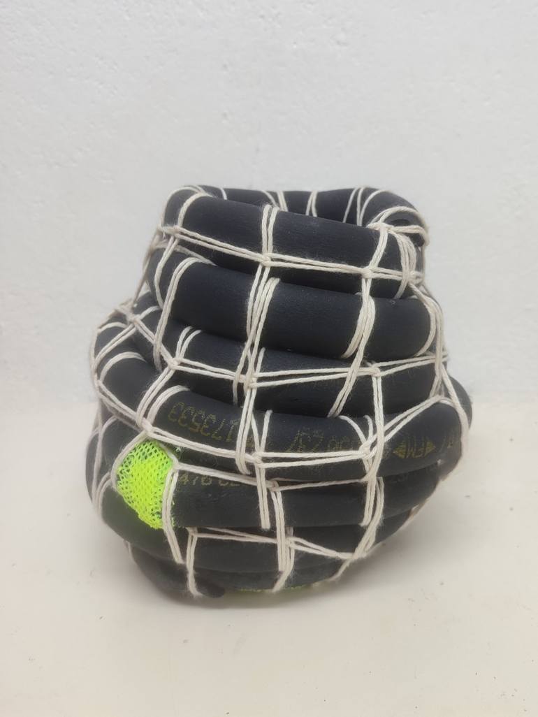 Jarrón #03: Aislante. “Archaeologies of Consumption” Serie In this serie, I transform discarded/found materials such as paper, cardboard and recycled fabrics - insulation foam tube in this piece- into vase-sculptures that explore the intersection between art, memory and sustainability. Each piece i...