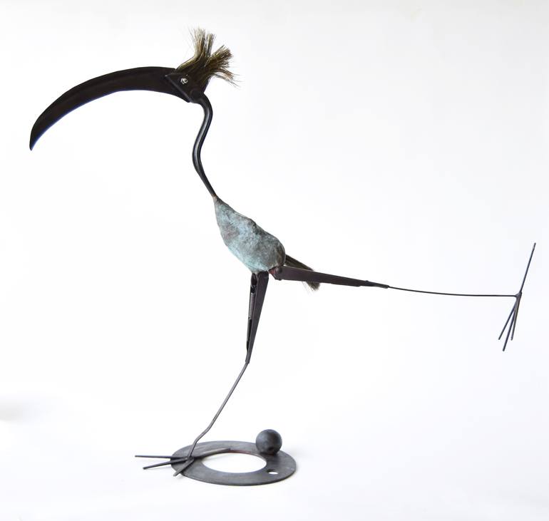 A migratory bird from northern Europe flies south in the winter. “sculpture has one leg that move into 2 positions”