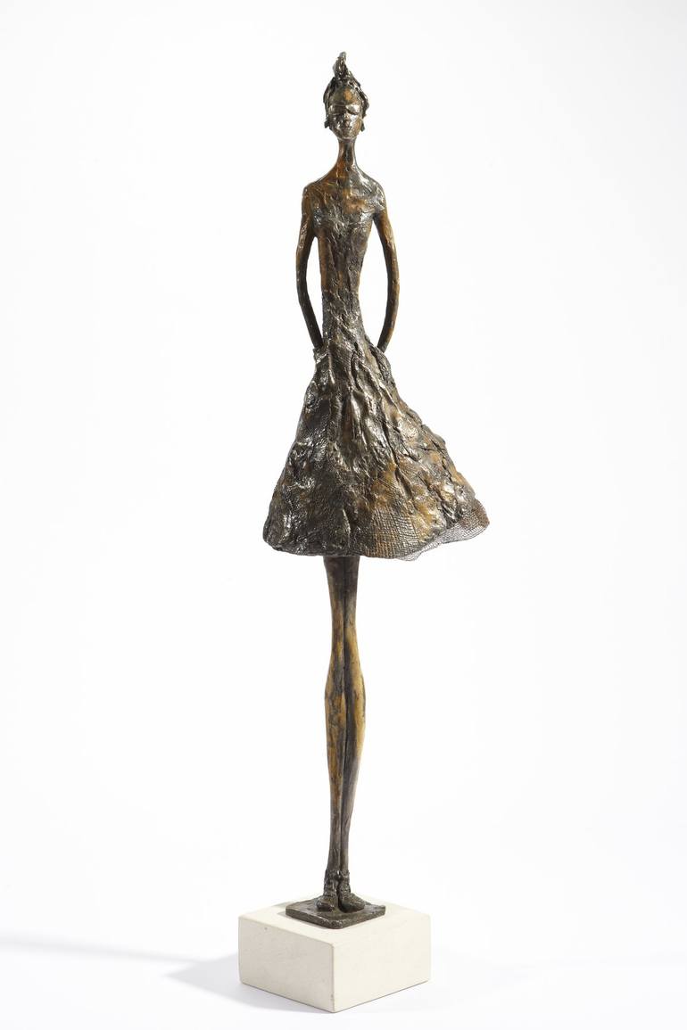 Sara trained under Ken Hughes, a pupil of Henry Moore, at Bath Academy of Art. There she achieved a first class honours degree in Sculpture and Printmaking and was awarded the Henry Moore Foundation Scholarship. Working in a variety of scales commissions have included a public art commission for Kandahar Real Estate for Droitwich Spa, sculptures for Volkswagen, the Nordic Swimming Federation, and creating the iconic "Spirit of Flight" for the OAG "˜Airline of the Year Awards'.. Currently she is working on a commission for the Royal Canadian Air Force Memorial at the National Memorial Arboretum and two sculptures for Carillion PLC to be sited in Worcester My sculptures take a light hearted view of the world, they explore our enjoyment of life and how in our image conscious world we wear sunglasses, go bare footed,teeter on impossible heels, and carry expensive handbags all for others to take note of. Influences Rodin - described sculpture as drawing in space, Giaccometti - exploration the human condition Egyptian and Etruscan Art - Simplicity of line and for their vivid representation of the subject matter's social economic status. Picasso for his light inventive energy. Early figurative sculptures were made in the life room Life drawing important for its rigour Interest in movement and balance Humour light hearted Narrative - each piece tells a story Commissions - enjoy the dialogue and exploration of diverse subject matter Experiences filter through to work eventually
